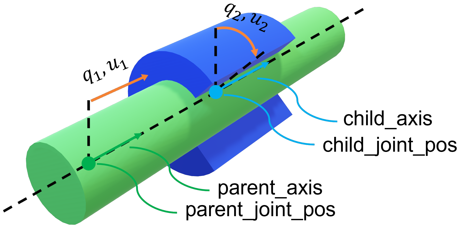 The biggest problem is currently that there is a lack of proper documentation. Yes, there are a few pages showing how to use the joints, but as also mentioned in this issue. There really is a need for some nice images explaining the joints, see the images below as example. As well as what the JointsMethod class actually can be used for. One problem I recently encountered is that the JointsMethod class does not actually allow kinematic loops, something which is not listed in the online documentation (it is in the docstring). A second problem is that there are currently only two joints and it would be great if there were even more. As a third option I mentioned I would like to add a quaternion orientation option, which makes implementing SpericalJoints a lot nicer. But as you may already have guessed I may actually change some things after discussing those with my mentors. Because as already mentioned it would be nice if we can actually manage loops, like a four bar linkage, using the JointsMethod.